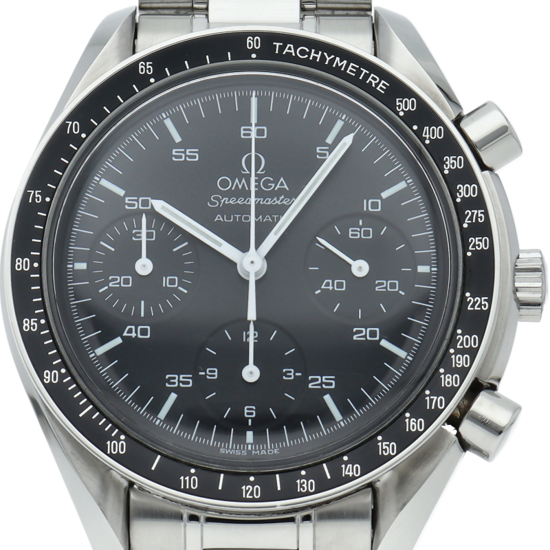 オメガを代表する人気シリーズ「スピードマスター」。プラ風防を使用したレトロな雰囲気かつシンプルにまとまったデザインがスタイルを選ばずにご使用いただけます。