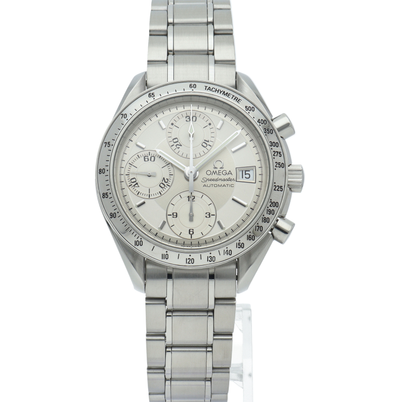 オメガの代表的な人気シリーズ「スピードマスター・デイト」。クロノグラフ・デイト表示機能付きと便利で実用性のある1本です。
