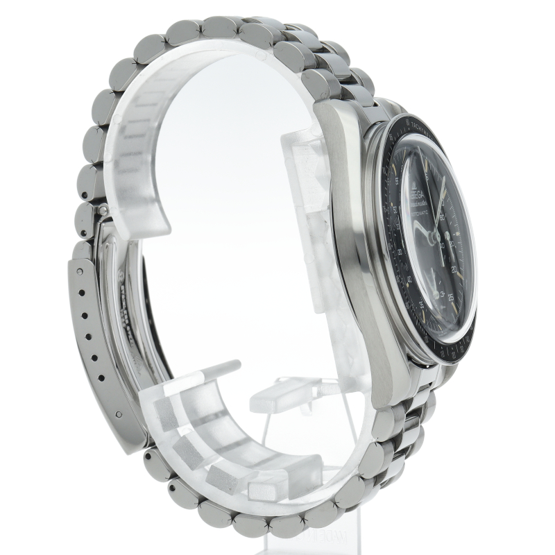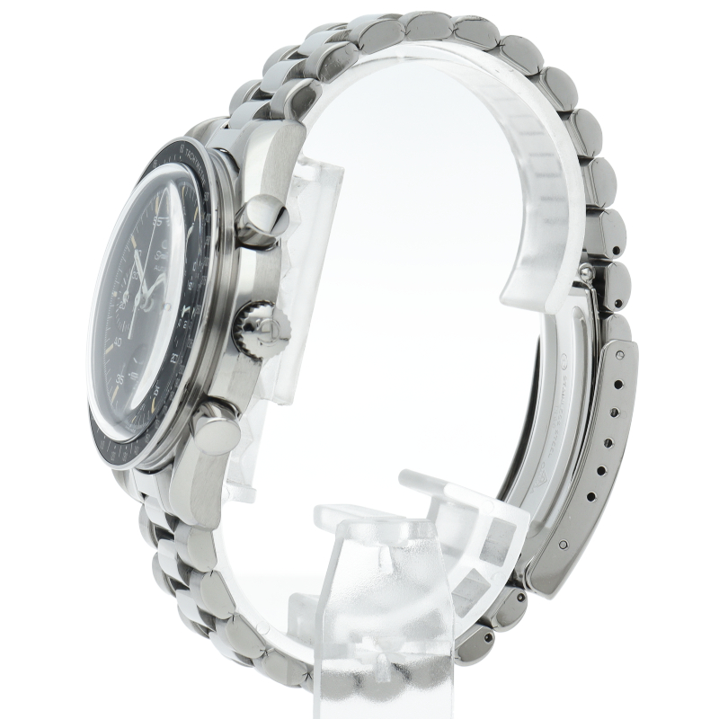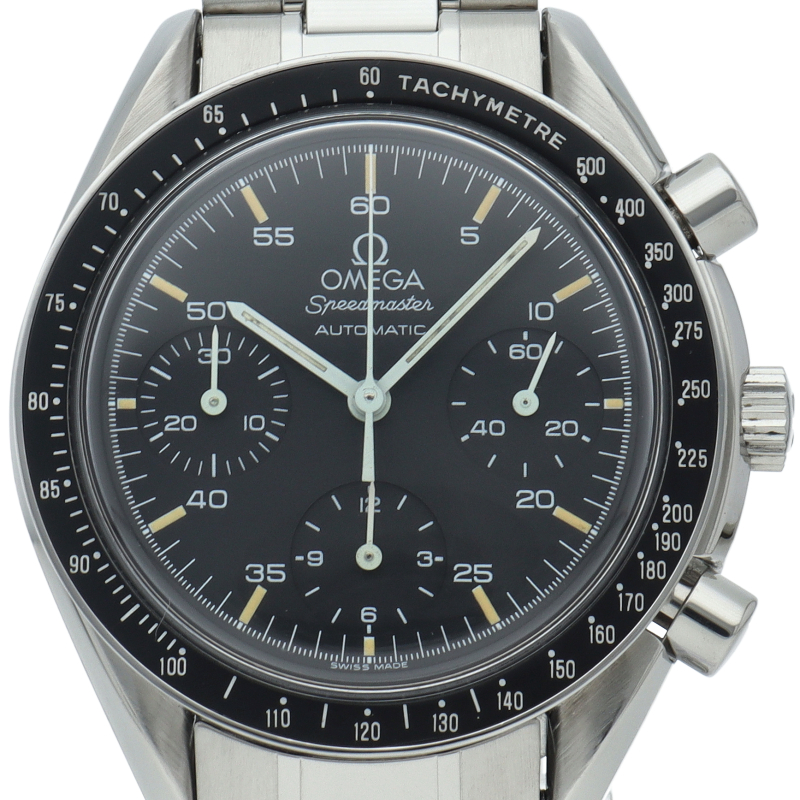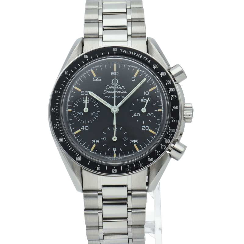 オメガを代表する人気シリーズ「スピードマスター」。プラ風防を使用したレトロな雰囲気かつシンプルにまとまったデザインがスタイルを選ばずにご使用いただけます。