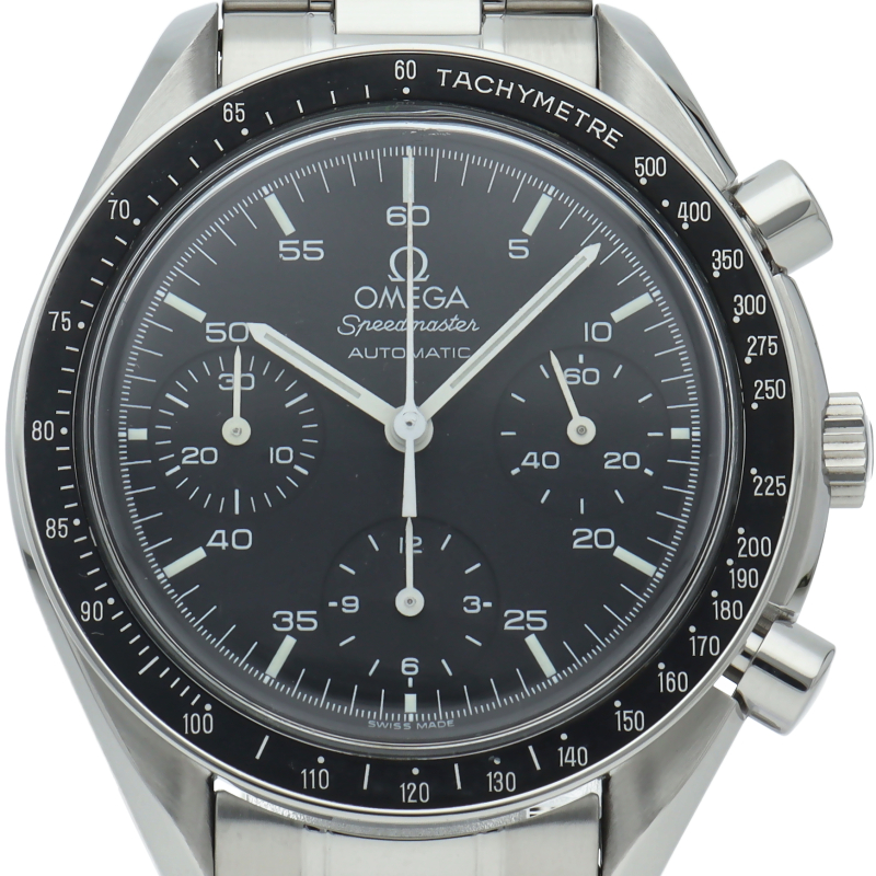 オメガを代表する人気シリーズ「スピードマスター」。プラ風防を使用したレトロな雰囲気かつシンプルにまとまったデザインがスタイルを選ばずにご使用いただけます。