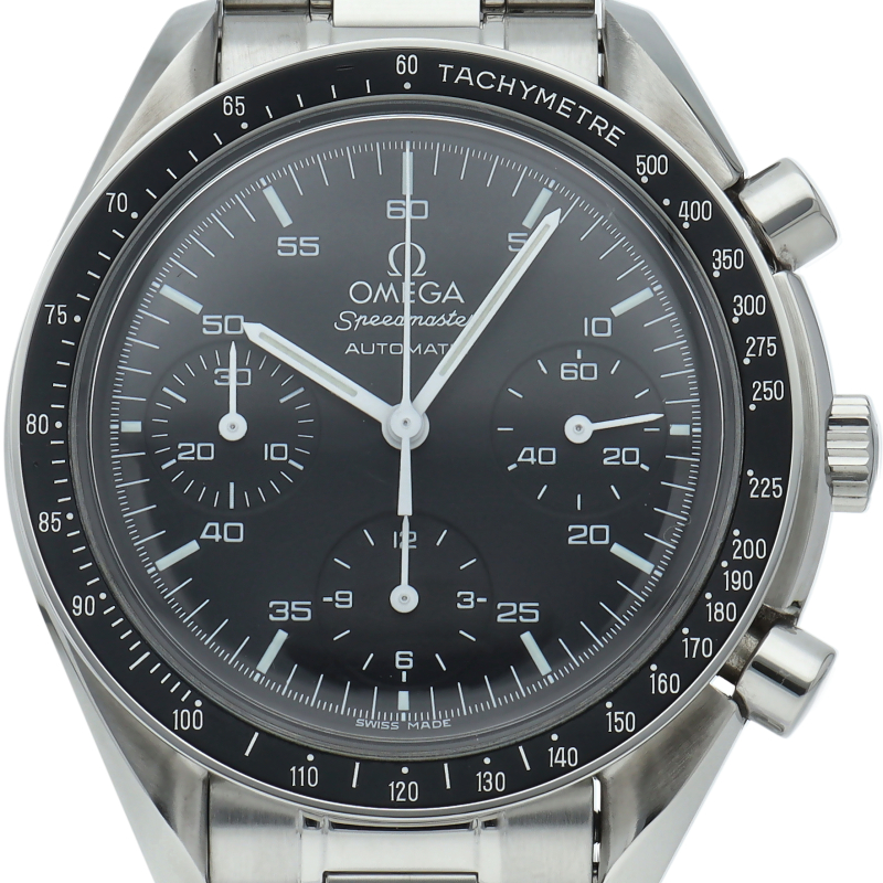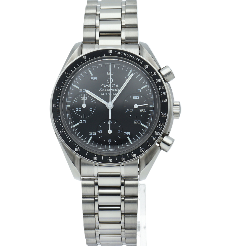 オメガを代表する人気シリーズ「スピードマスター」。プラ風防を使用したレトロな雰囲気かつシンプルにまとまったデザインがスタイルを選ばずにご使用いただけます。
