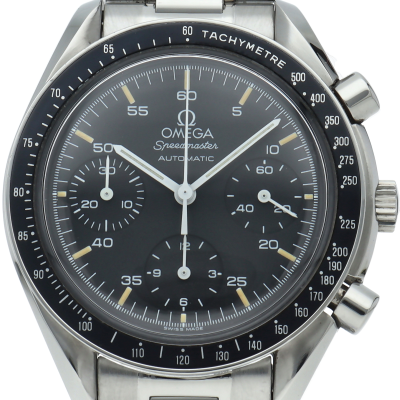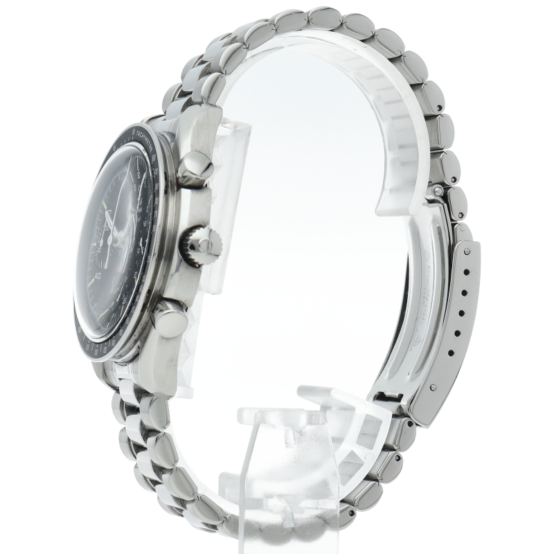 オメガを代表する人気シリーズ「スピードマスター」。プラ風防を使用したレトロな雰囲気かつシンプルにまとまったデザインがスタイルを選ばずにご使用いただけます。