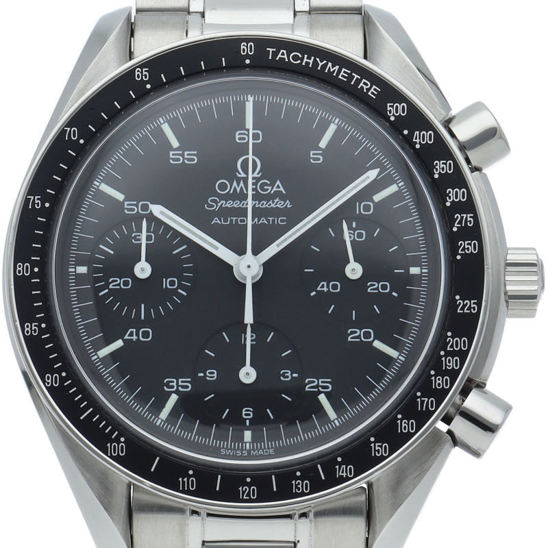 オメガを代表する人気シリーズ「スピードマスター」。プラ風防を使用したレトロな雰囲気かつシンプルにまとまったデザインがスタイルを選ばずにご使用いただけます。
