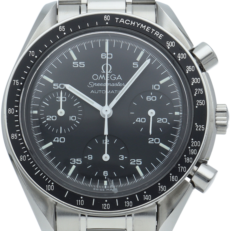オメガを代表する人気シリーズ「スピードマスター」。プラ風防を使用したレトロな雰囲気かつシンプルにまとまったデザインがスタイルを選ばずにご使用いただけます。