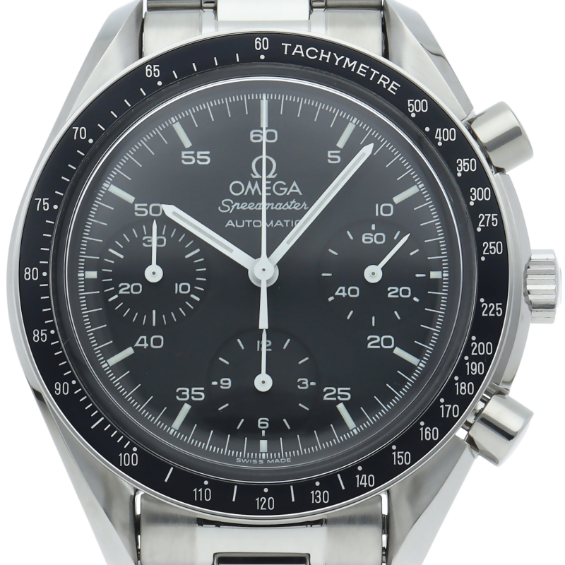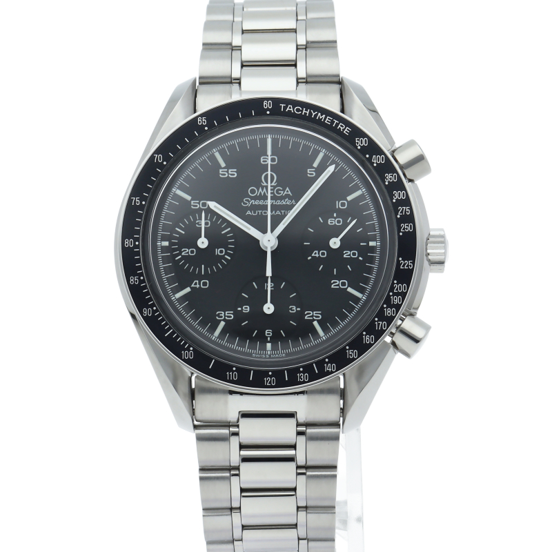 オメガを代表する人気シリーズ「スピードマスター」。プラ風防を使用したレトロな雰囲気かつシンプルにまとまったデザインがスタイルを選ばずにご使用いただけます。