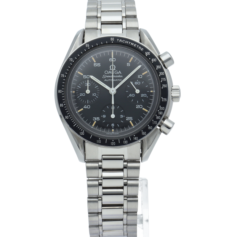 オメガを代表する人気シリーズ「スピードマスター」。プラ風防を使用したレトロな雰囲気かつシンプルにまとまったデザインがスタイルを選ばずにご使用いただけます。