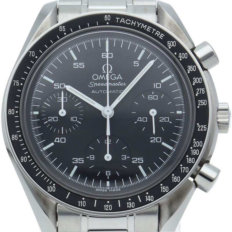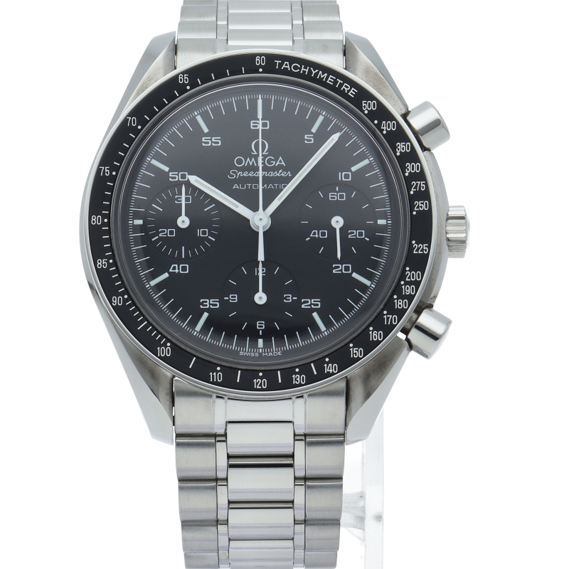 オメガを代表する人気シリーズ「スピードマスター」。プラ風防を使用したレトロな雰囲気かつシンプルにまとまったデザインがスタイルを選ばずにご使用いただけます。