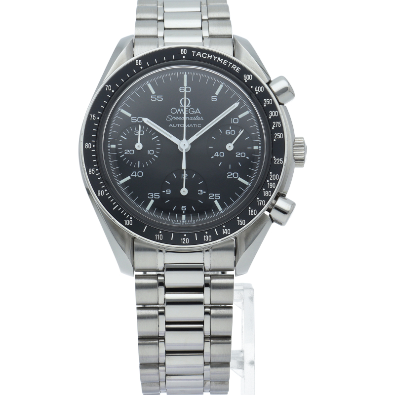 オメガを代表する人気シリーズ「スピードマスター」。プラ風防を使用したレトロな雰囲気かつシンプルにまとまったデザインがスタイルを選ばずにご使用いただけます。