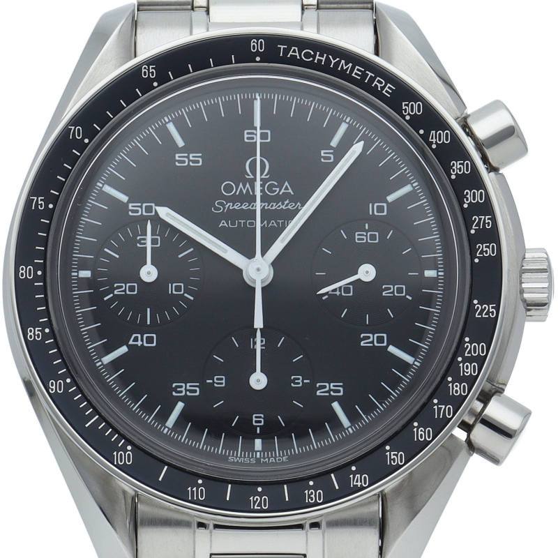 オメガを代表する人気シリーズ「スピードマスター」。プラ風防を使用したレトロな雰囲気かつシンプルにまとまったデザインがスタイルを選ばずにご使用いただけます。