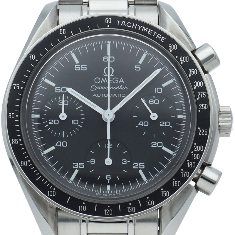オメガを代表する人気シリーズ「スピードマスター」。プラ風防を使用したレトロな雰囲気かつシンプルにまとまったデザインがスタイルを選ばずにご使用いただけます。