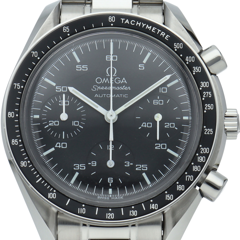 オメガを代表する人気シリーズ「スピードマスター」。プラ風防を使用したレトロな雰囲気かつシンプルにまとまったデザインがスタイルを選ばずにご使用いただけます。