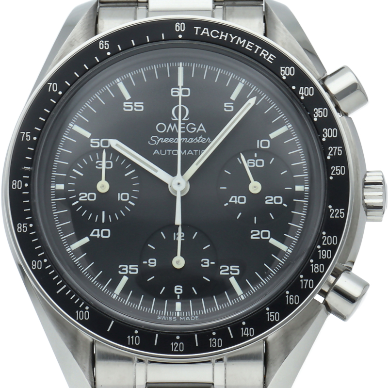 オメガを代表する人気シリーズ「スピードマスター」。プラ風防を使用したレトロな雰囲気かつシンプルにまとまったデザインがスタイルを選ばずにご使用いただけます。
