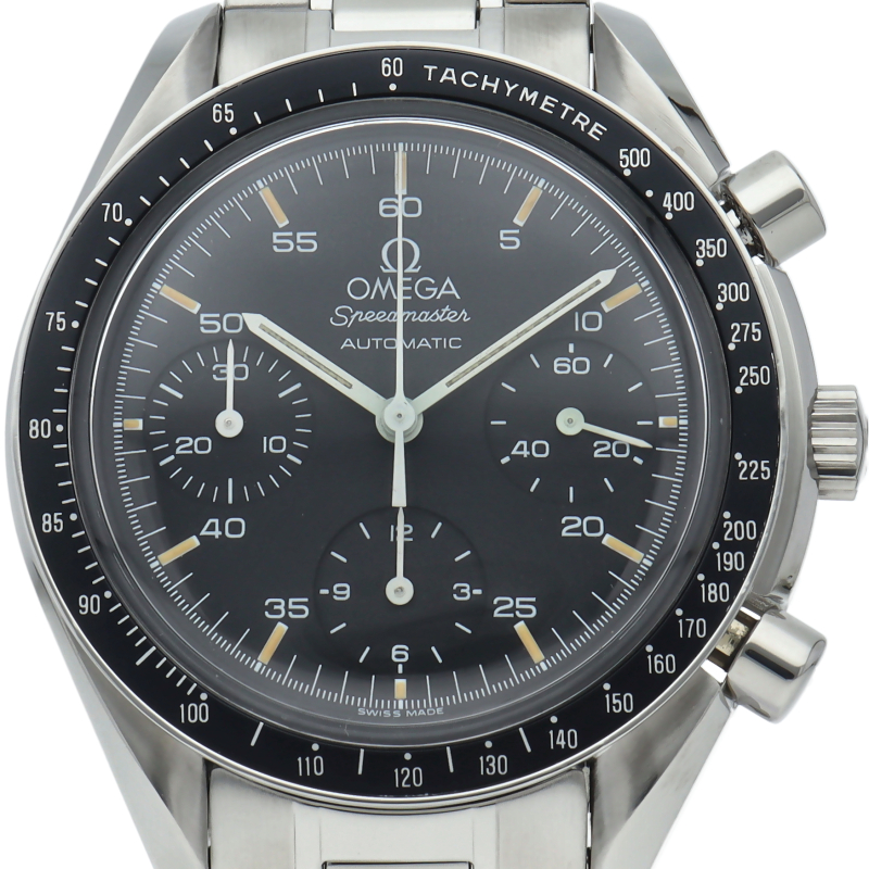 オメガを代表する人気シリーズ「スピードマスター」。プラ風防を使用したレトロな雰囲気かつシンプルにまとまったデザインがスタイルを選ばずにご使用いただけます。