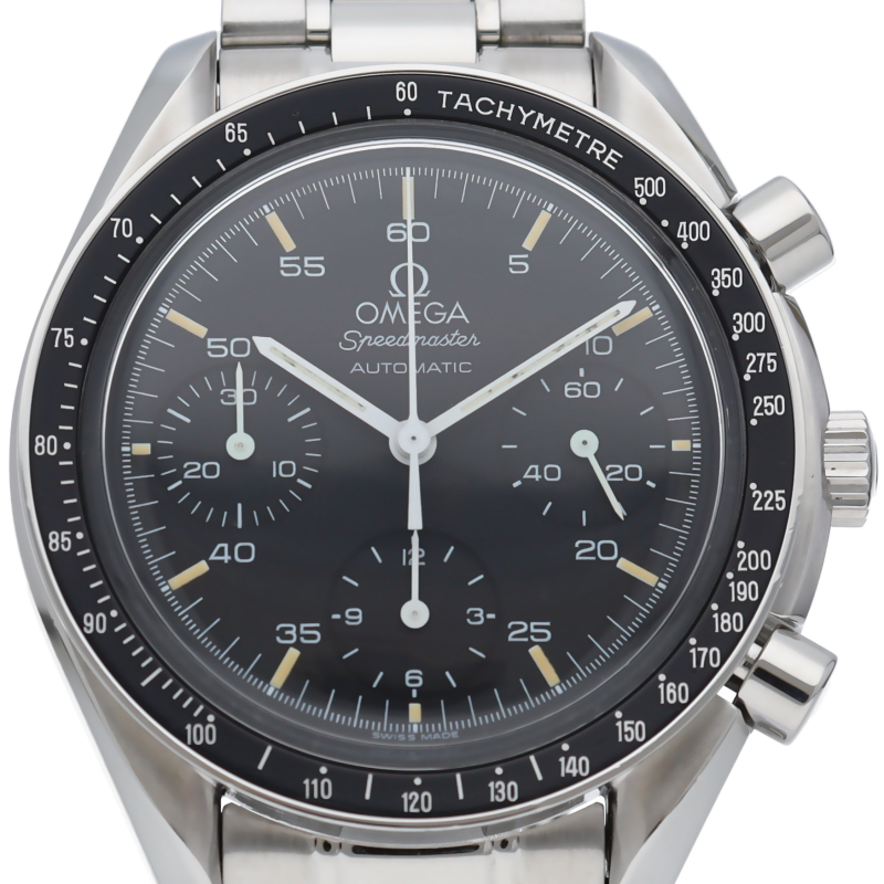 オメガを代表する人気シリーズ「スピードマスター」。プラ風防を使用したレトロな雰囲気かつシンプルにまとまったデザインがスタイルを選ばずにご使用いただけます。