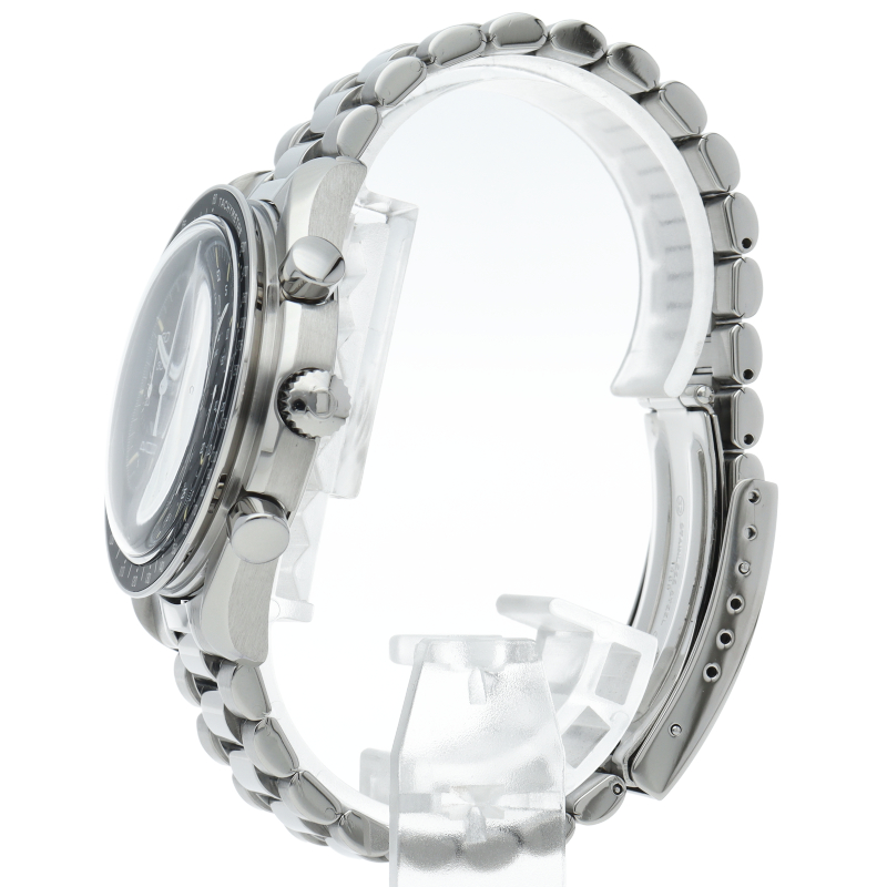 オメガを代表する人気シリーズ「スピードマスター」。プラ風防を使用したレトロな雰囲気かつシンプルにまとまったデザインがスタイルを選ばずにご使用いただけます。