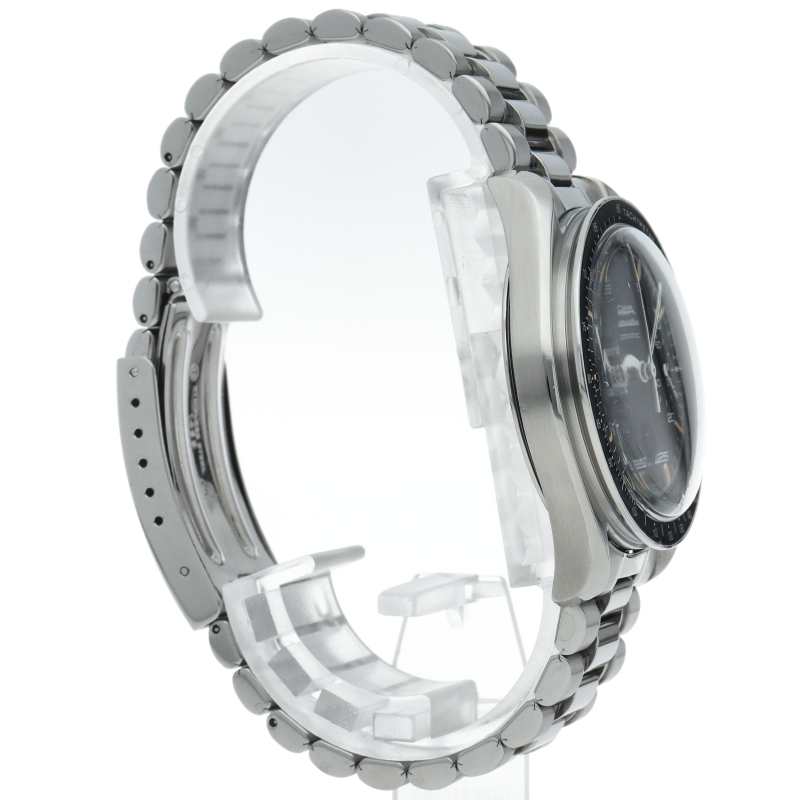 オメガを代表する人気シリーズ「スピードマスター」。プラ風防を使用したレトロな雰囲気かつシンプルにまとまったデザインがスタイルを選ばずにご使用いただけます。