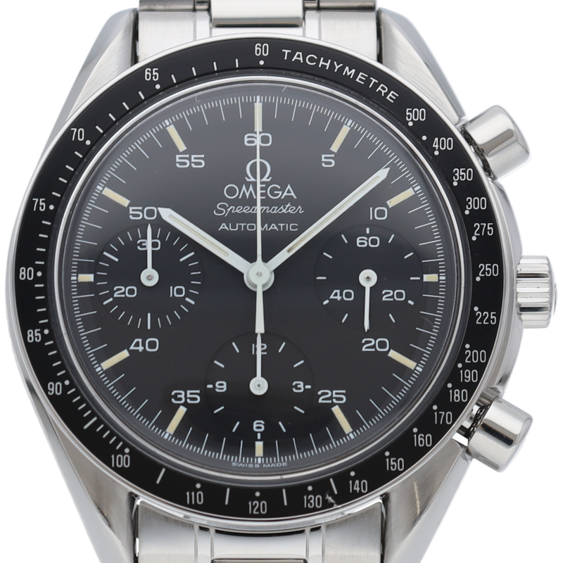 オメガを代表する人気シリーズ「スピードマスター」。プラ風防を使用したレトロな雰囲気かつシンプルにまとまったデザインがスタイルを選ばずにご使用いただけます。