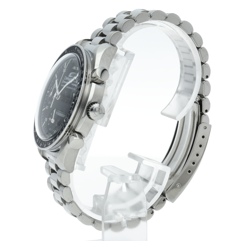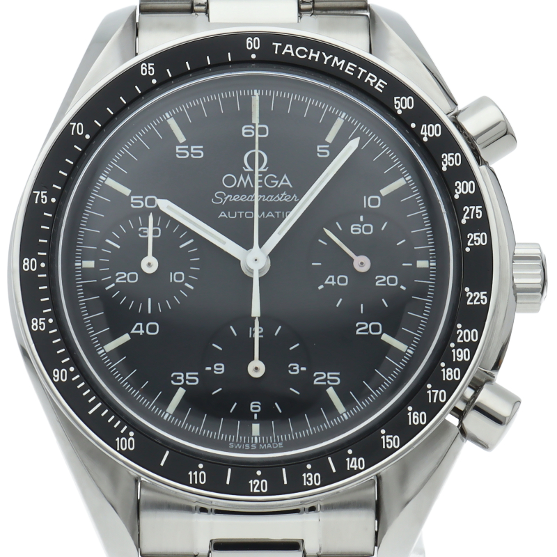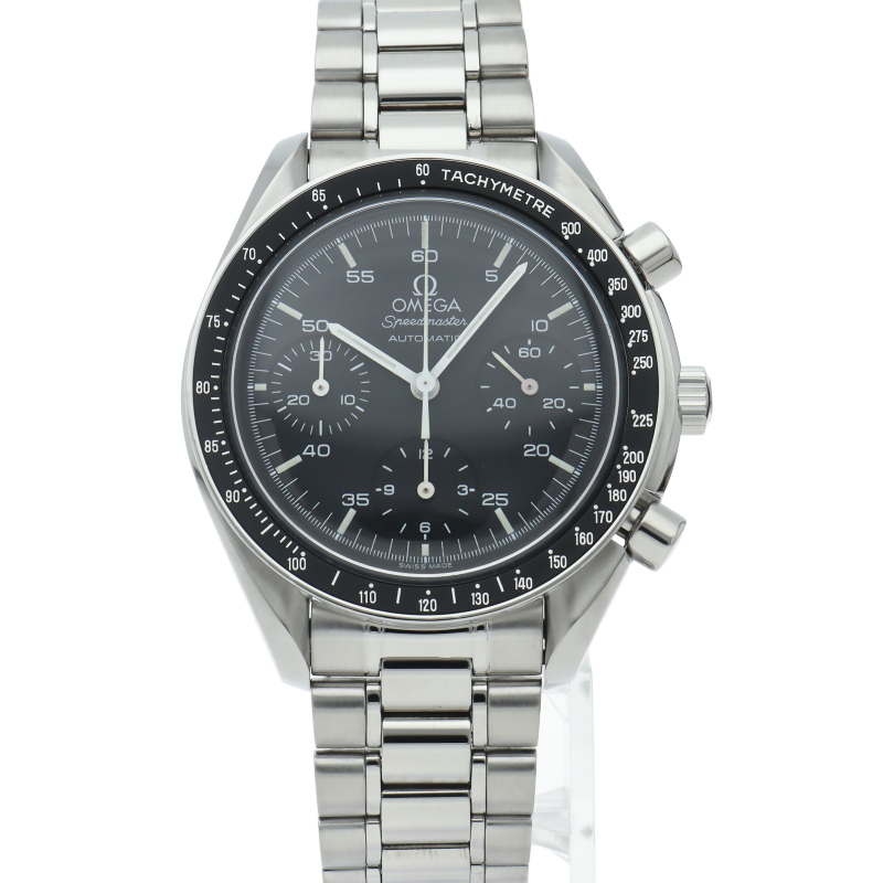 オメガを代表する人気シリーズ「スピードマスター」。プラ風防を使用したレトロな雰囲気かつシンプルにまとまったデザインがスタイルを選ばずにご使用いただけます。