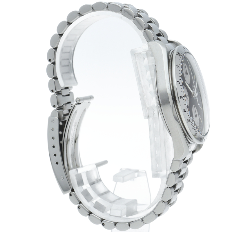 オメガを代表する人気シリーズ「スピードマスター」。プラ風防を使用したレトロな雰囲気かつシンプルにまとまったデザインがスタイルを選ばずにご使用いただけます。