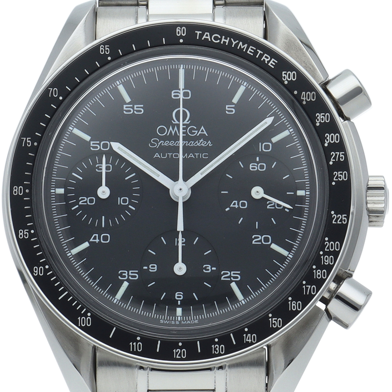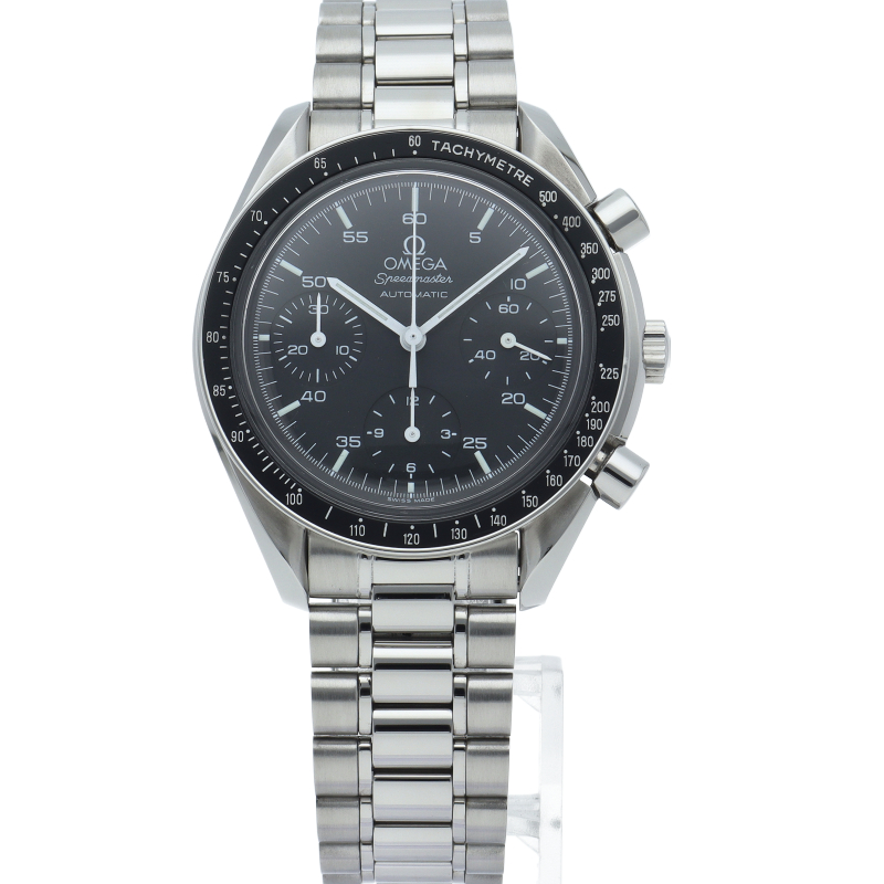 オメガを代表する人気シリーズ「スピードマスター」。プラ風防を使用したレトロな雰囲気かつシンプルにまとまったデザインがスタイルを選ばずにご使用いただけます。