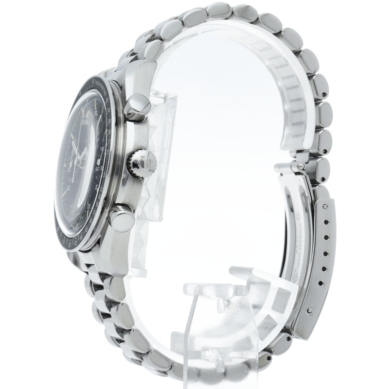 オメガを代表する人気シリーズ「スピードマスター」。プラ風防を使用したレトロな雰囲気かつシンプルにまとまったデザインがスタイルを選ばずにご使用いただけます。