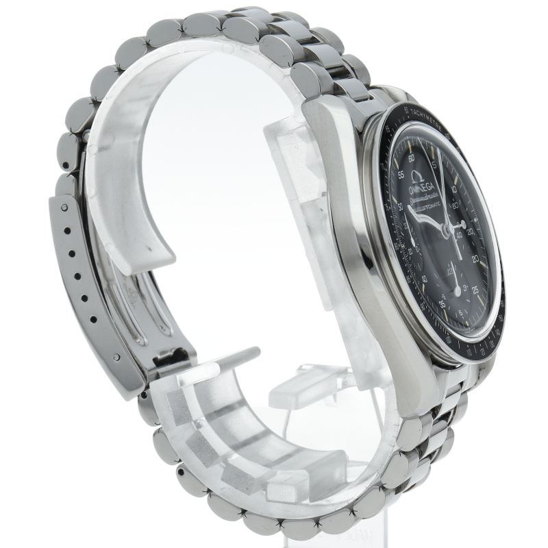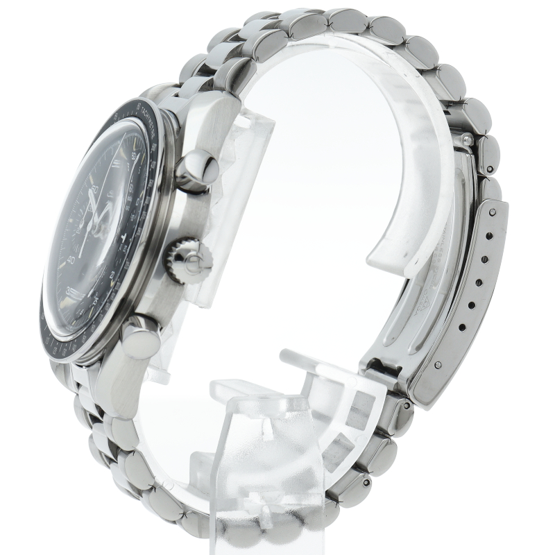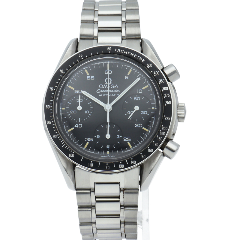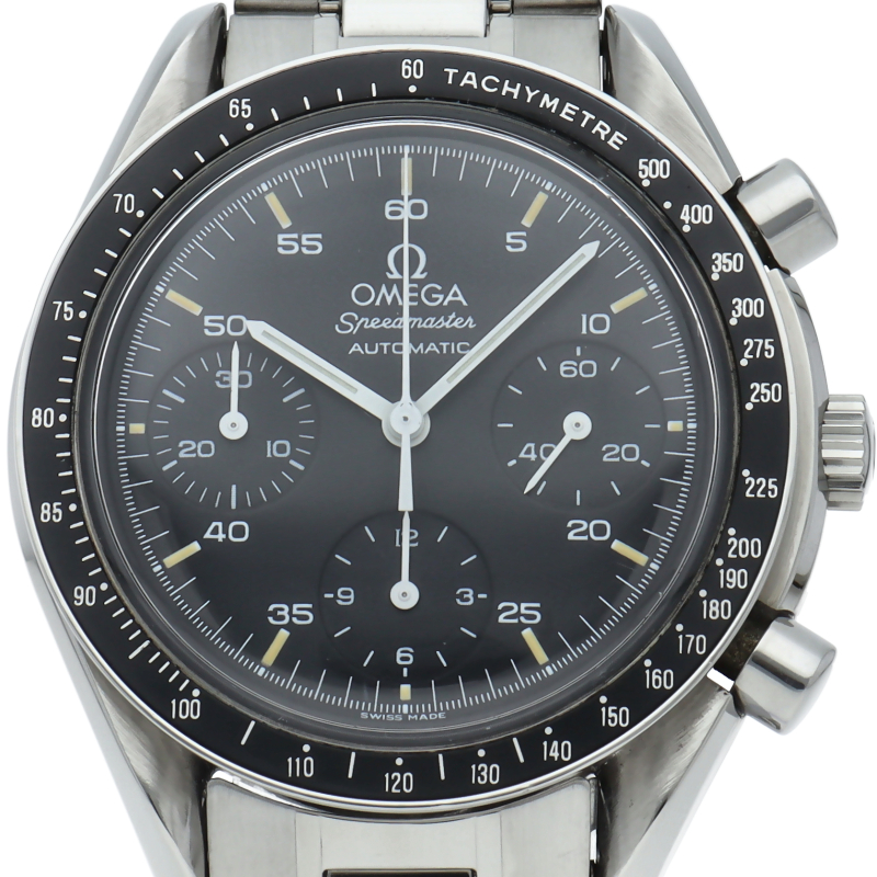 オメガを代表する人気シリーズ「スピードマスター」。プラ風防を使用したレトロな雰囲気かつシンプルにまとまったデザインがスタイルを選ばずにご使用いただけます。