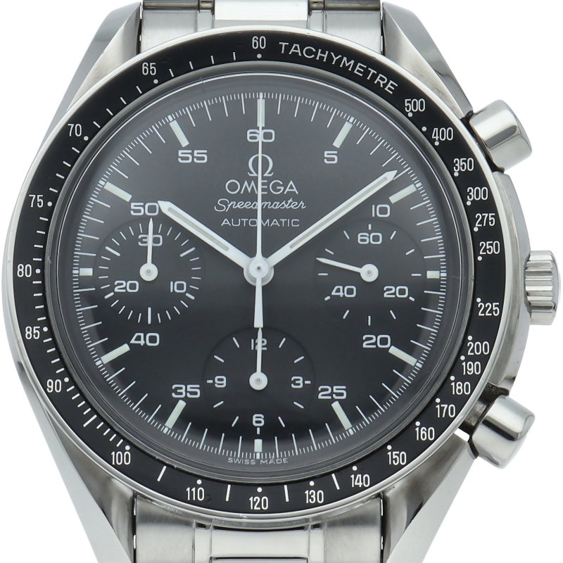 オメガを代表する人気シリーズ「スピードマスター」。プラ風防を使用したレトロな雰囲気かつシンプルにまとまったデザインがスタイルを選ばずにご使用いただけます。