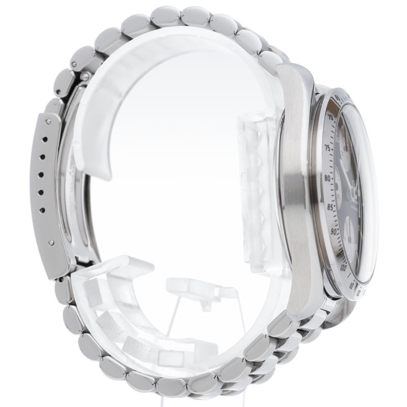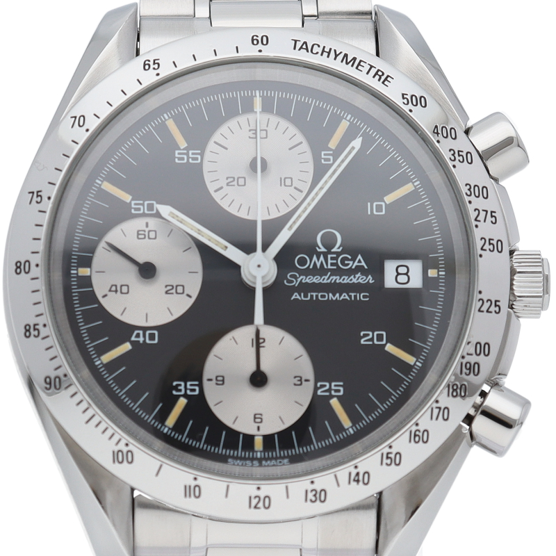 オメガを代表する人気シリーズ「スピードマスター」。プラ風防を使用したレトロな雰囲気かつシンプルにまとまったデザインがスタイルを選ばずにご使用いただけます。