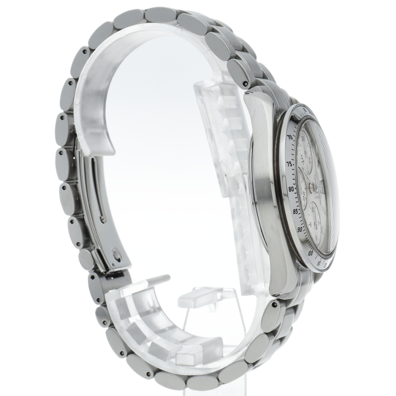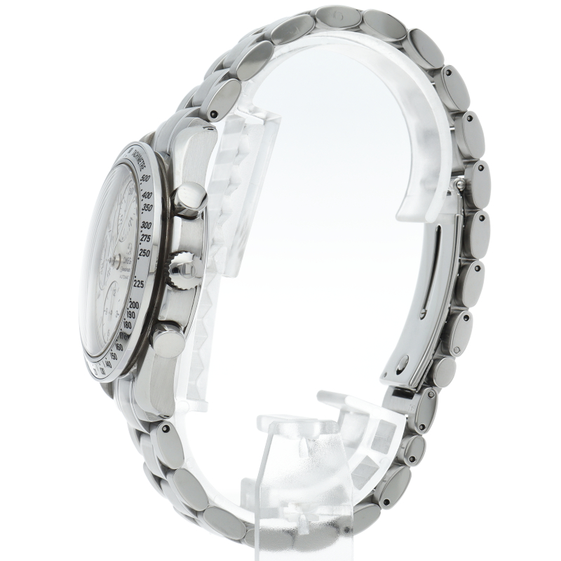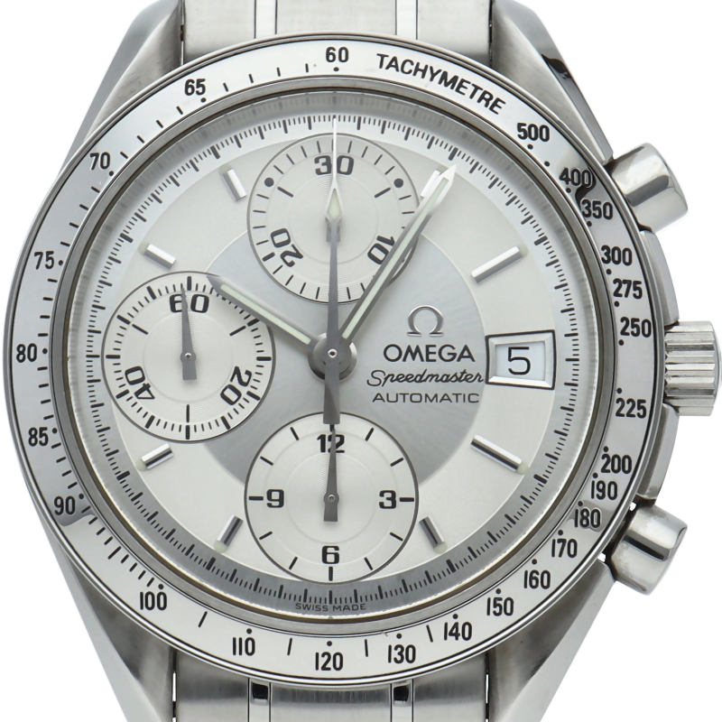 オメガの代表的な人気シリーズ「スピードマスター・デイト」。クロノグラフ・デイト表示機能付きと便利で実用性のある1本です。