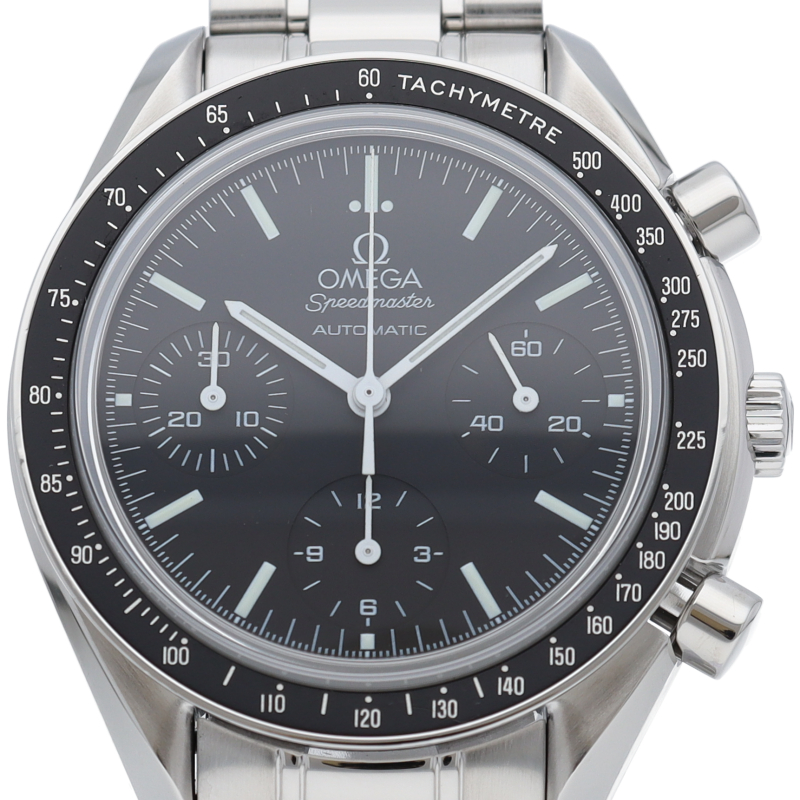オメガを代表する人気シリーズ「スピードマスター」。プラ風防からサファイアクリスタル風防へ仕様変更された実用性の高いモデルです。すでに生産終了となり、これからの相場が楽しみな1本です。