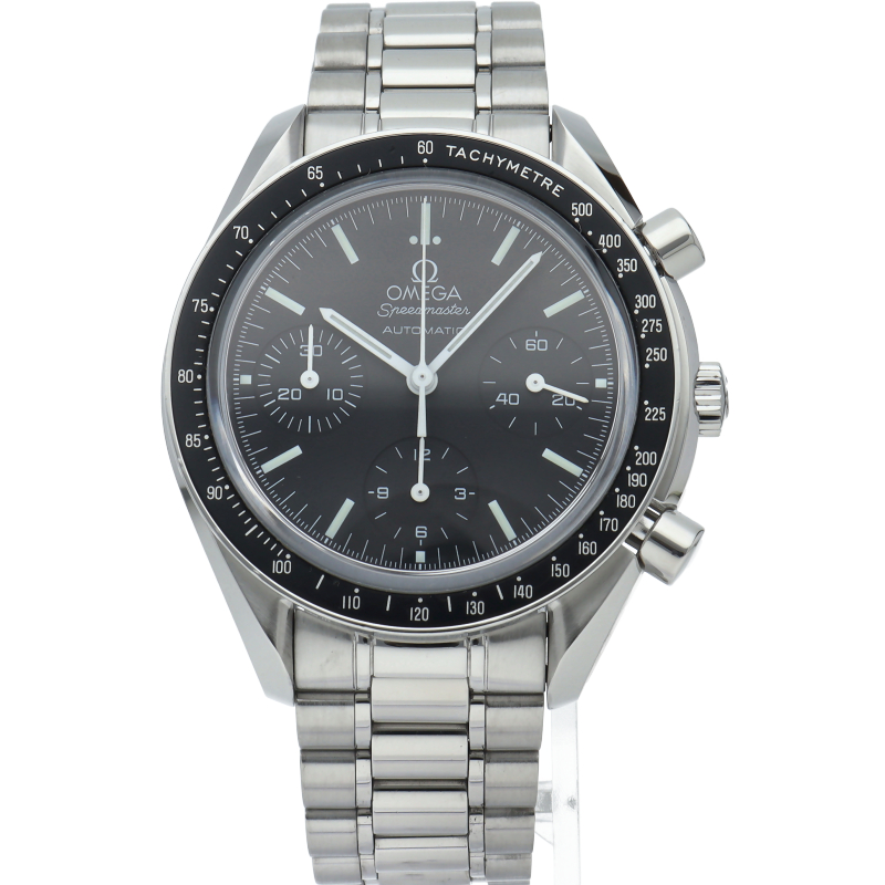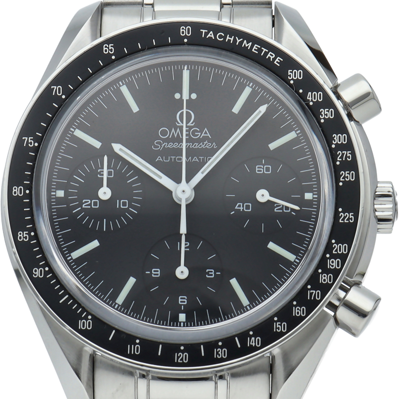 オメガを代表する人気シリーズ「スピードマスター」。プラ風防からサファイアクリスタル風防へ仕様変更された実用性の高いモデルです。すでに、生産終了となりこれからの相場が楽しみな1本です。