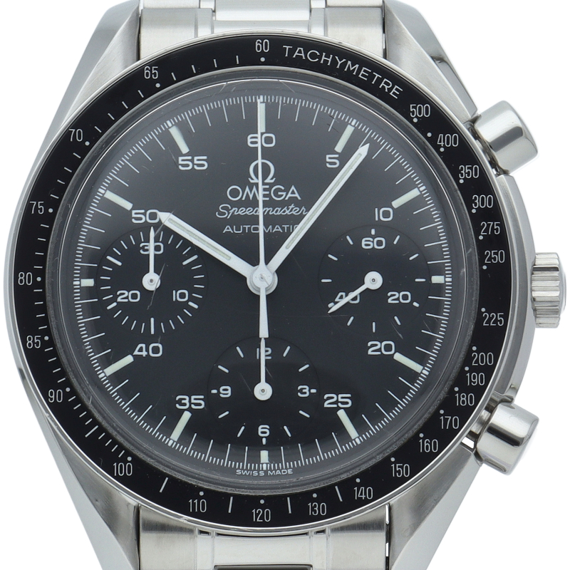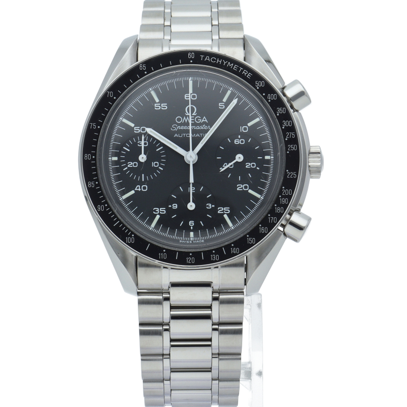 オメガを代表する人気シリーズ「スピードマスター」。プラ風防を使用したレトロな雰囲気かつシンプルにまとまったデザインがスタイルを選ばずにご使用いただけます。