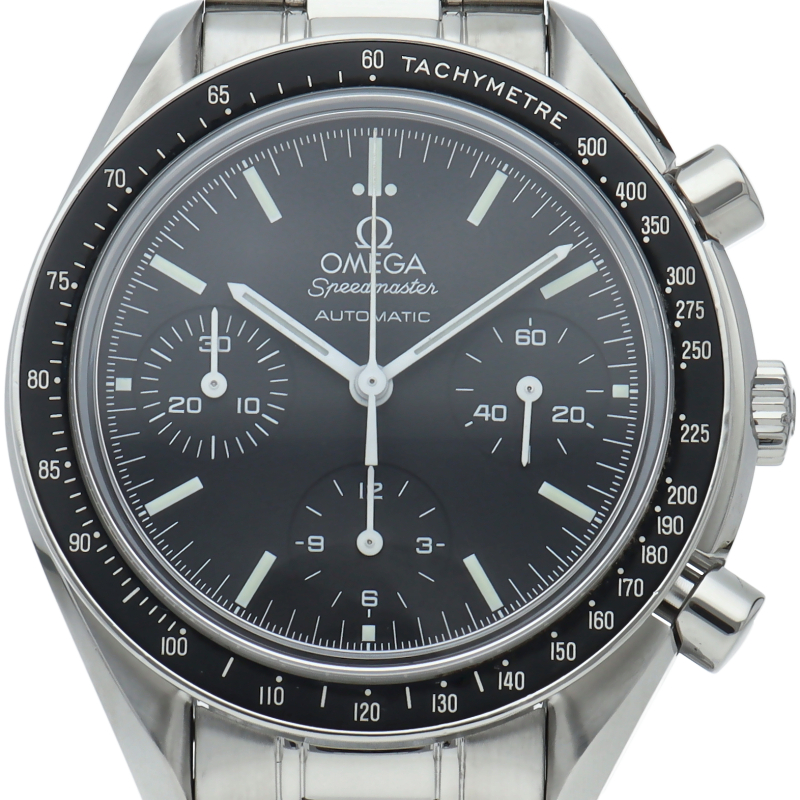 オメガを代表する人気シリーズ「スピードマスター」。プラ風防からサファイアクリスタル風防へ仕様変更された実用性の高いモデルです。すでに、生産終了となりこれからの相場が楽しみな1本です。