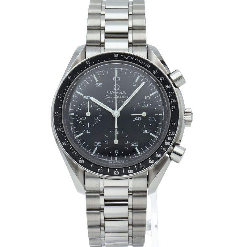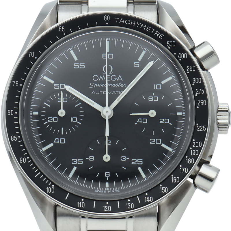 オメガを代表する人気シリーズ「スピードマスター」。プラ風防を使用したレトロな雰囲気かつシンプルにまとまったデザインがスタイルを選ばずにご使用いただけます。