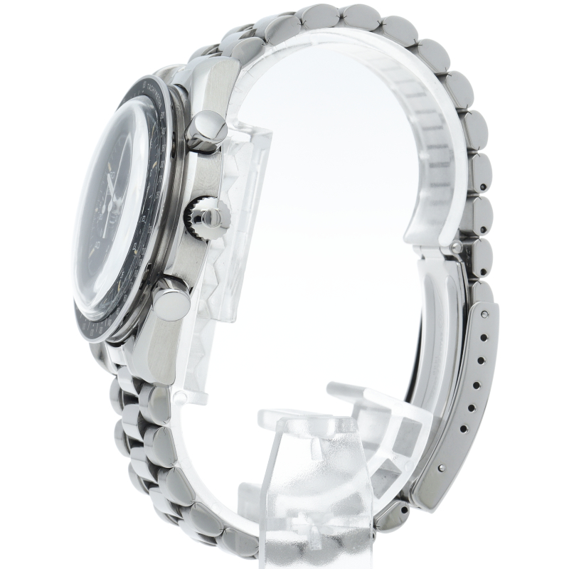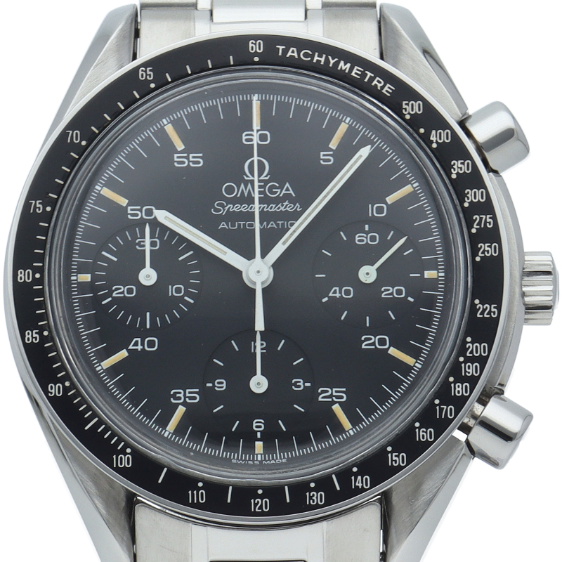 オメガを代表する人気シリーズ「スピードマスター」。プラ風防を使用したレトロな雰囲気かつシンプルにまとまったデザインがスタイルを選ばずにご使用いただけます。