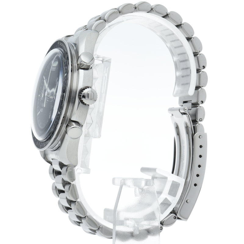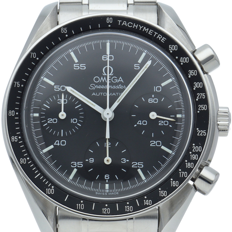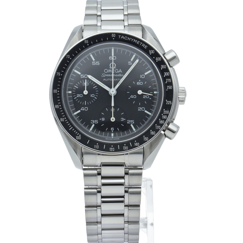 オメガを代表する人気シリーズ「スピードマスター」。プラ風防を使用したレトロな雰囲気かつシンプルにまとまったデザインがスタイルを選ばずにご使用いただけます。