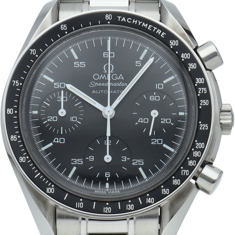 オメガを代表する人気シリーズ「スピードマスター」。プラ風防を使用したレトロな雰囲気かつシンプルにまとまったデザインがスタイルを選ばずにご使用いただけます。
