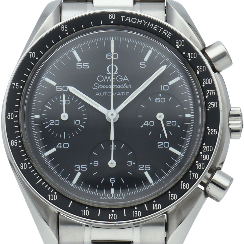 オメガを代表する人気シリーズ「スピードマスター」。プラ風防を使用したレトロな雰囲気かつシンプルにまとまったデザインがスタイルを選ばずにご使用いただけます。