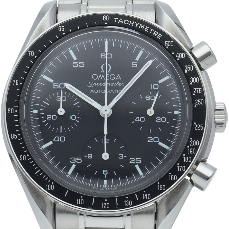 オメガを代表する人気シリーズ「スピードマスター」。プラ風防を使用したレトロな雰囲気かつシンプルにまとまったデザインがスタイルを選ばずにご使用いただけます。