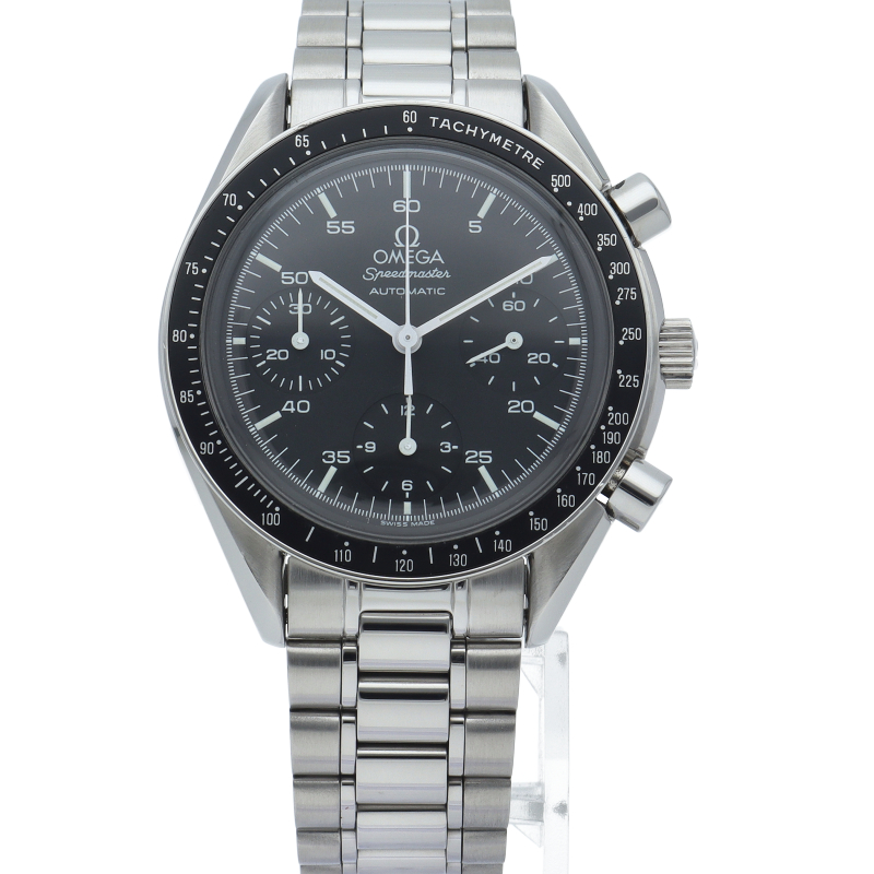 オメガを代表する人気シリーズ「スピードマスター」。プラ風防を使用したレトロな雰囲気かつシンプルにまとまったデザインがスタイルを選ばずにご使用いただけます。