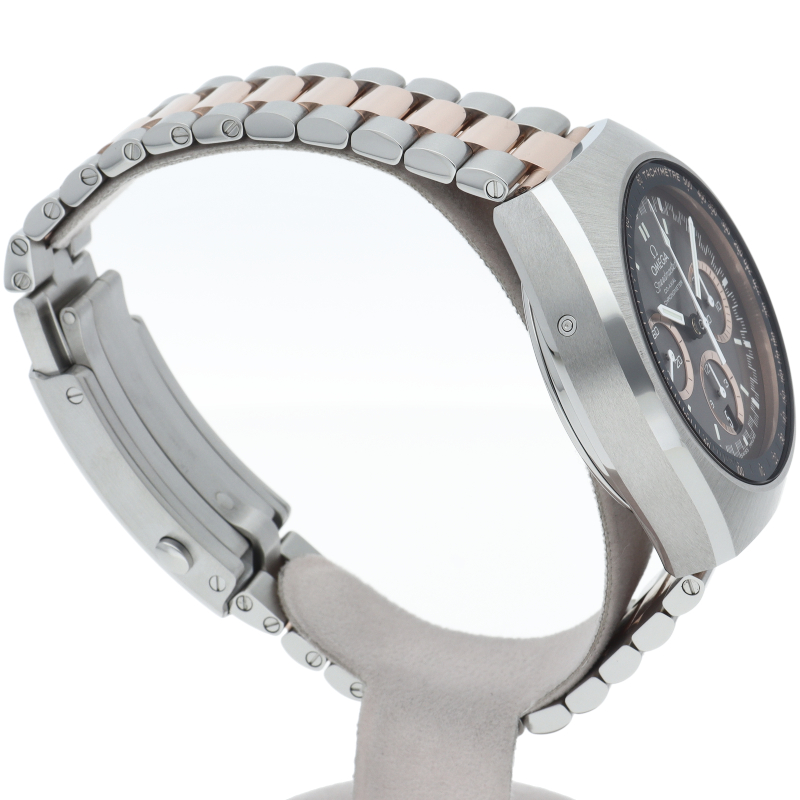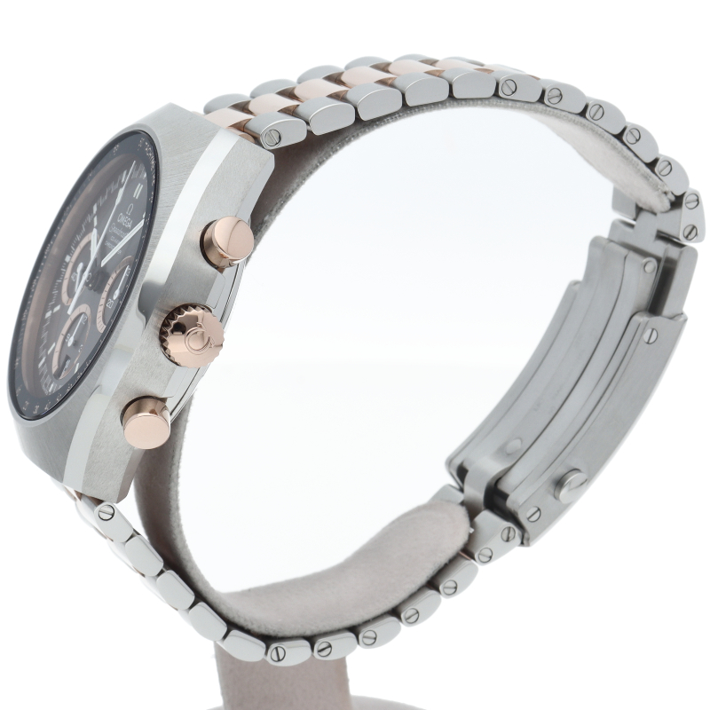 アポロ11号が月面着陸に成功した1969年に発表された「スピードマスターマークII」を復刻したモデルをステンレスとセドナゴールドを使用し華やかな印象に仕立てたモデル。独特のオーバルケースはオリジナル譲りで、内部は最新のスピードマスターらしく、Si14シリコン製ヒゲゼンマイとコラムホイール式クロノグラフを採用したコーアクシャルキャリバー3330を搭載。