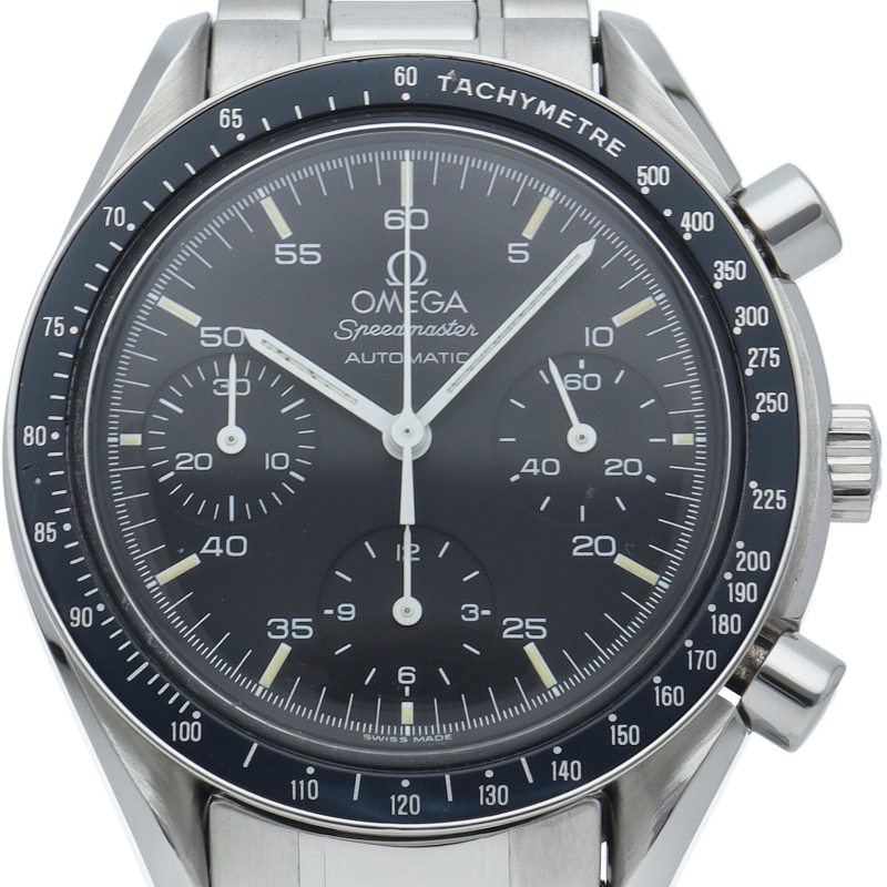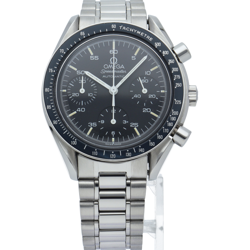 オメガを代表する人気シリーズ「スピードマスター」。プラ風防を使用したレトロな雰囲気かつシンプルにまとまったデザインがスタイルを選ばずにご使用いただけます。