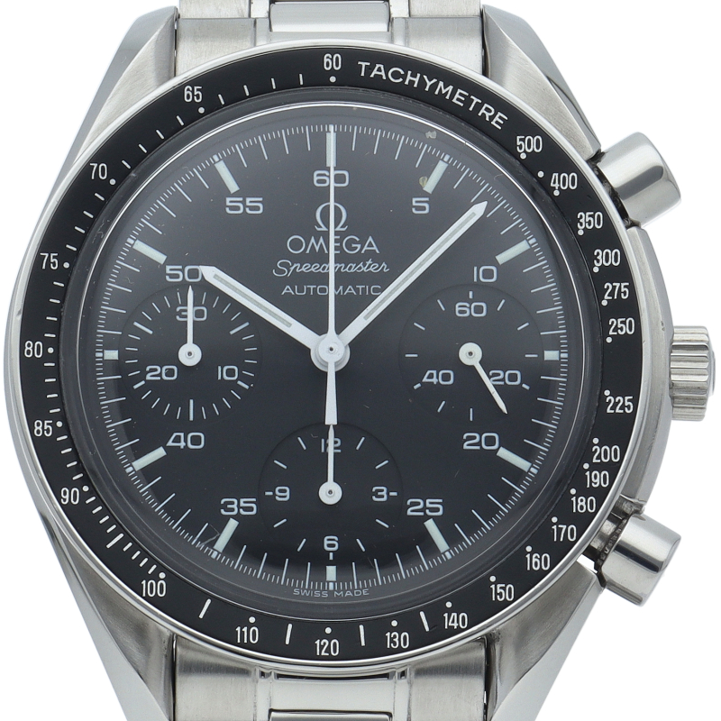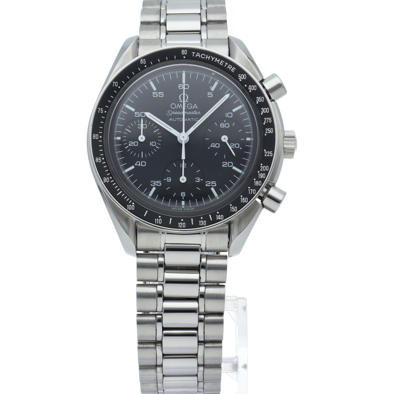 オメガを代表する人気シリーズ「スピードマスター」。プラ風防を使用したレトロな雰囲気かつシンプルにまとまったデザインがスタイルを選ばずにご使用いただけます。