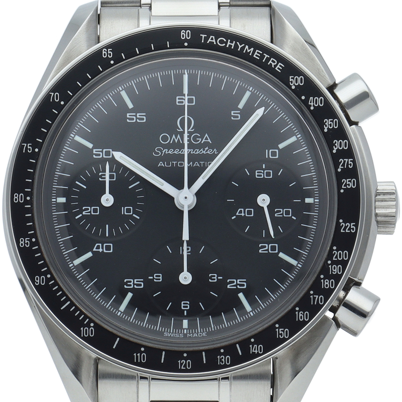 オメガを代表する人気シリーズ「スピードマスター」。プラ風防を使用したレトロな雰囲気かつシンプルにまとまったデザインがスタイルを選ばずにご使用いただけます。