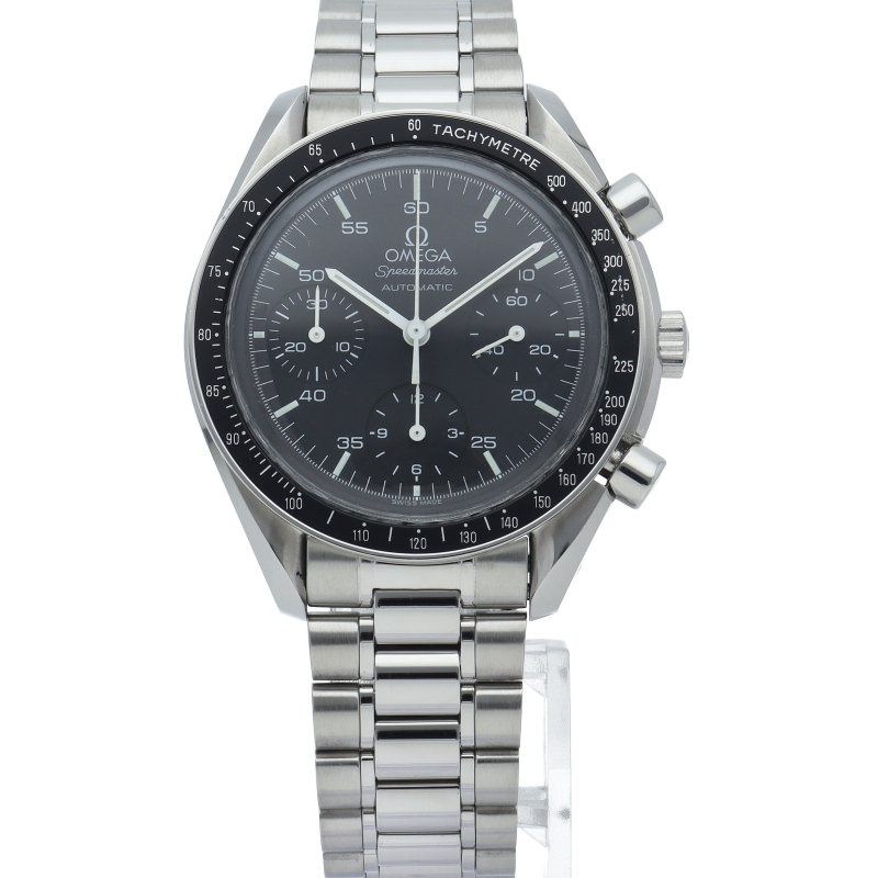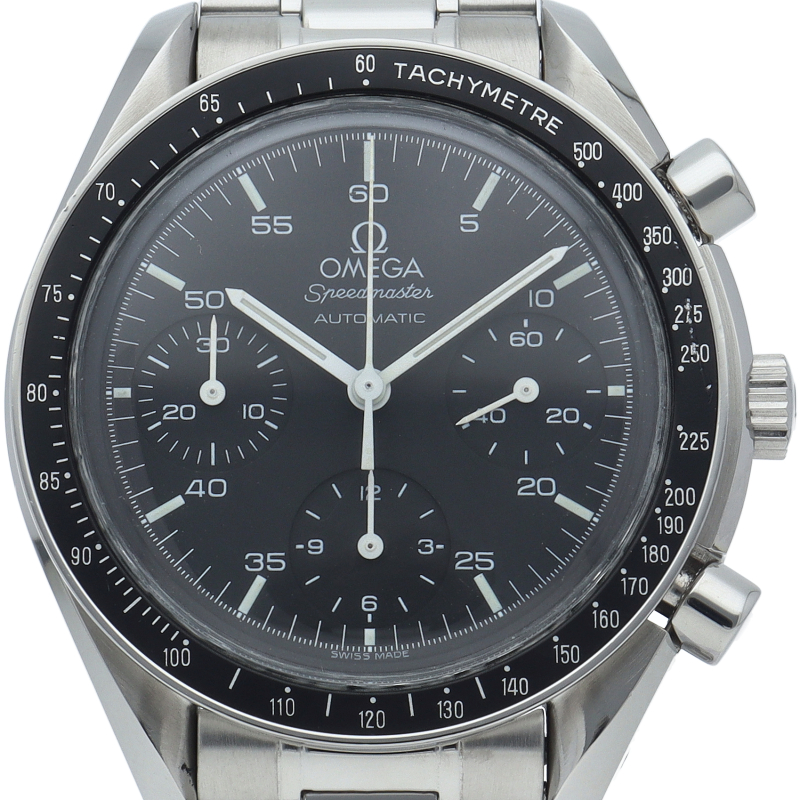 オメガを代表する人気シリーズ「スピードマスター」。プラ風防を使用したレトロな雰囲気かつシンプルにまとまったデザインがスタイルを選ばずにご使用いただけます。
