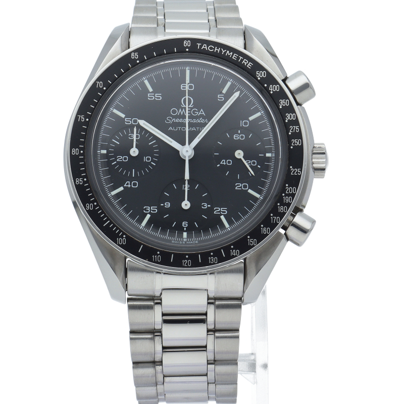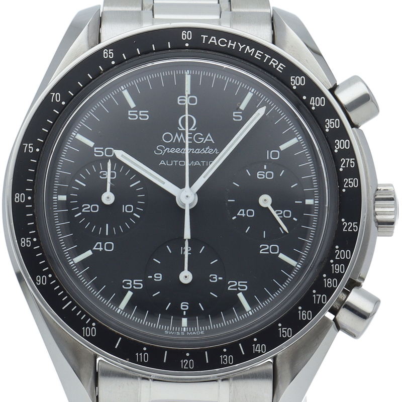 オメガを代表する人気シリーズ「スピードマスター」。プラ風防を使用したレトロな雰囲気かつシンプルにまとまったデザインがスタイルを選ばずにご使用いただけます。