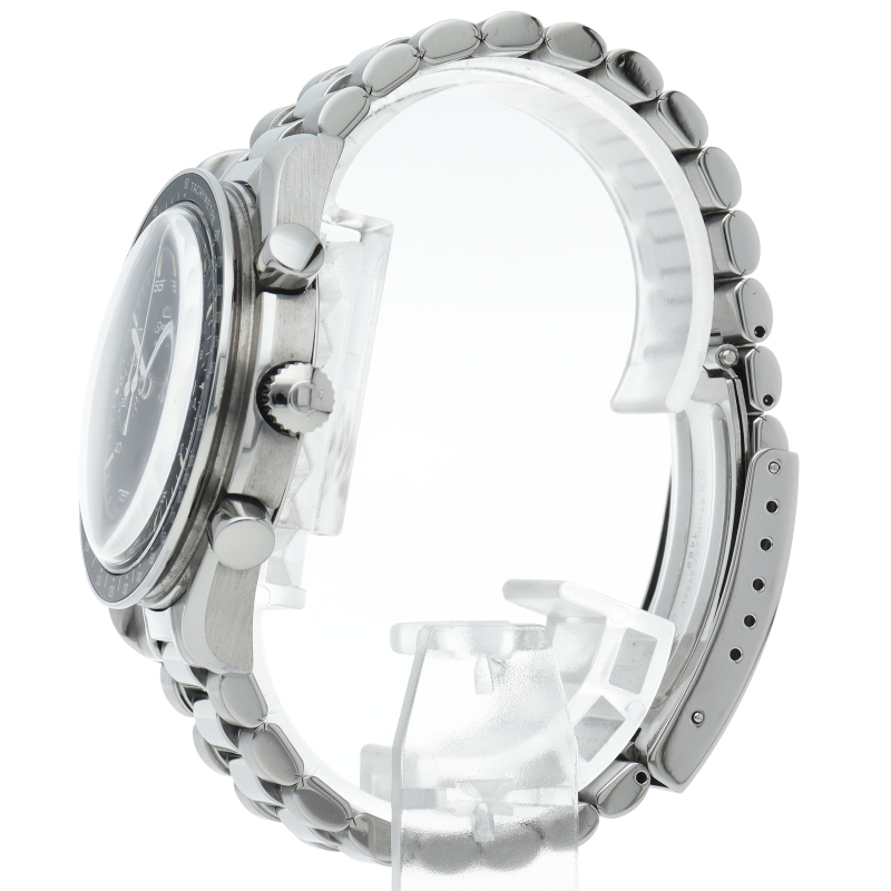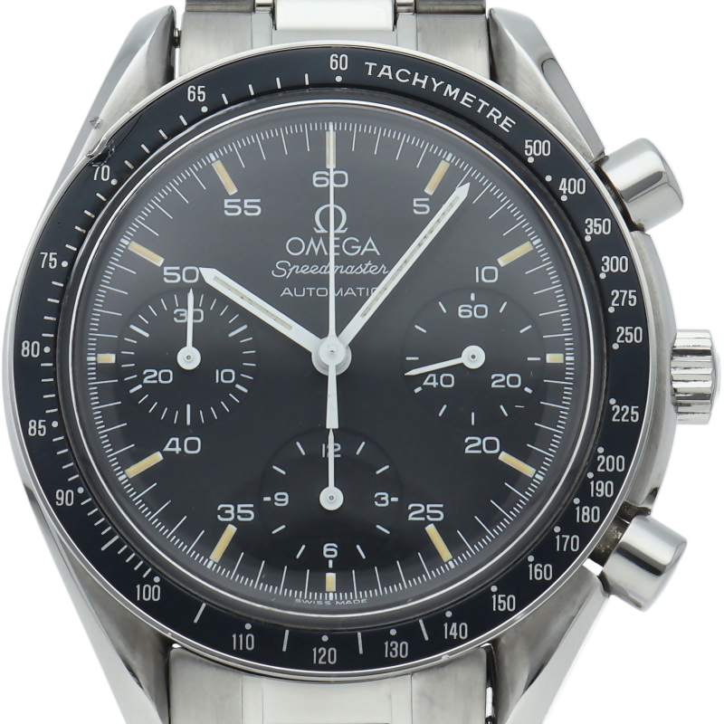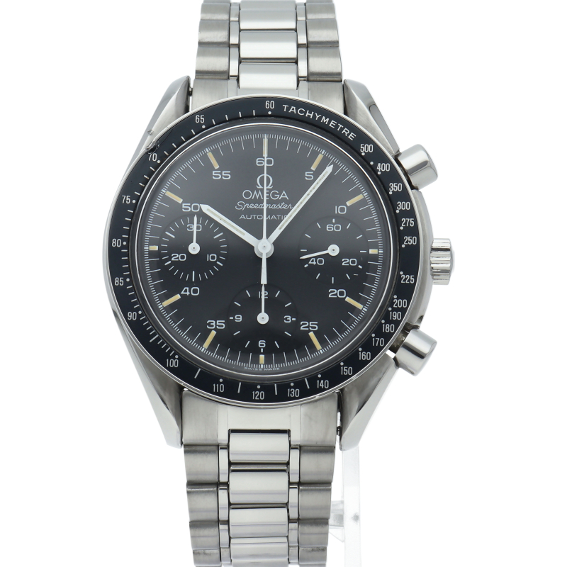 オメガを代表する人気シリーズ「スピードマスター」。プラ風防を使用したレトロな雰囲気かつシンプルにまとまったデザインがスタイルを選ばずにご使用いただけます。