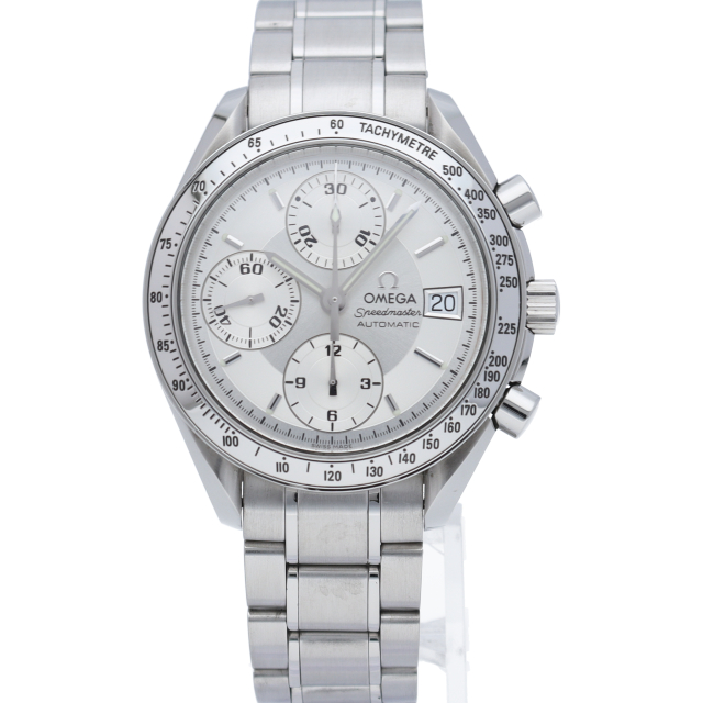 オメガの代表的な人気シリーズ「スピードマスター・デイト」。クロノグラフ・デイト表示機能付きと便利で実用性のある1本です。
