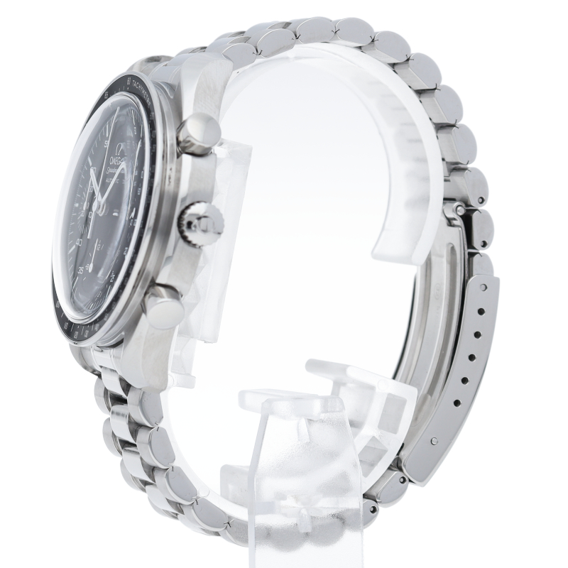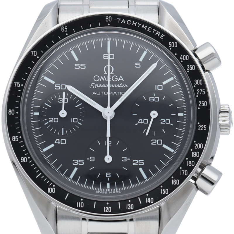 オメガを代表する人気シリーズ「スピードマスター」。プラ風防を使用したレトロな雰囲気かつシンプルにまとまったデザインがスタイルを選ばずにご使用いただけます。