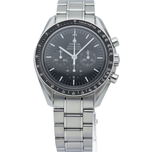 オメガを代表する人気モデルでムーンウォッチとしても有名な1本。プラ風防を使用したレトロな雰囲気と手巻ムーブメントが逆に新鮮な1本。クロノグラフ機能付。